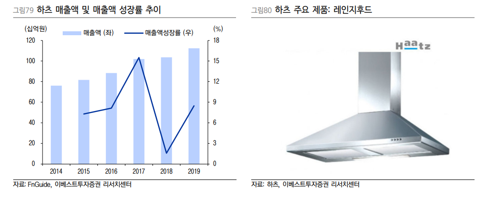 하츠는 주방 후드 및 빌트인기기를 생산하는 기업으로 이 제품들은 입주 시기에 투입되는 입주마감재이다. 최근 공급 부족이나 입주량이 감소함에도 매출은 꾸준히 상승했는데 이는 주택 실수요자들의 매매 증가와 이에 따른 리모델링 수요의 확대와 집 꾸미기 관심에 대한 증대에 따른 것으로 보인다.