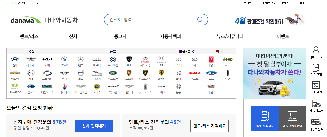 이 중에 핵심은 중고차거래 플랫폼이다. 다나와 홈페이지를 보면 메뉴의 제일 앞쪽에 '자동차' 링크를 위치시켜 놓았다.