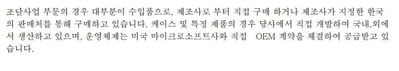 제품매출 : 종속회사인 다나와컴퓨터에서 국가 조달망인 나라장터에 컴퓨터 제조/판매 사업