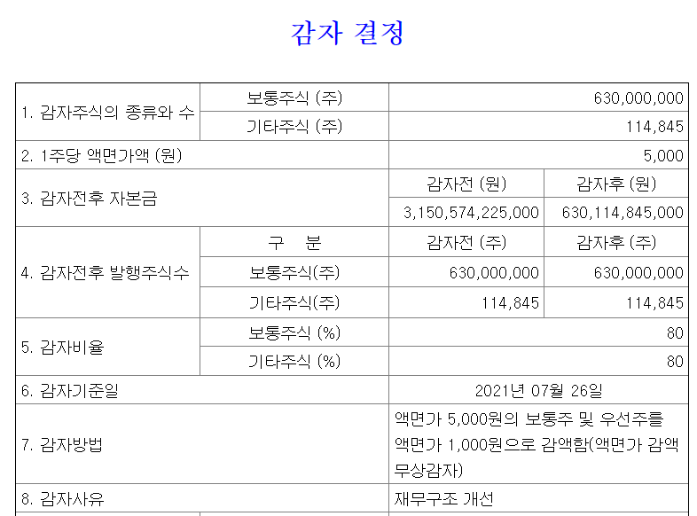 삼성중공업은 감자비율 80%로 '액면가 감액 무상감자'를 공시했다.