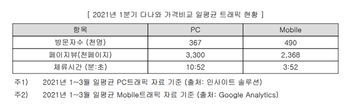 다나와라는 강력한 PC부품 플랫폼이 최고의 강점이다. 하지만 약간 불안하게도 2020년 평균대비 페이지뷰와 체류시간이 감소하였다. 앞으로 2~3분기에 걸쳐서 감소가 지속된다면 꽤나 큰 타격이 될듯싶다. 하지만 뒤에 나오겠지만 광고 단가가 올랐는지 광고사업의 매출은 작년 1분기 대비 증가하였다.
