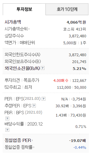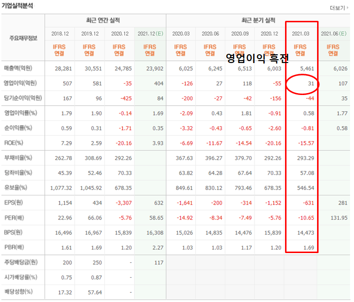 코로나 영향으로 2020년 큰 타격을 받았으며 1분기 영업이익&순이익 흑자전환에 성공했다.
