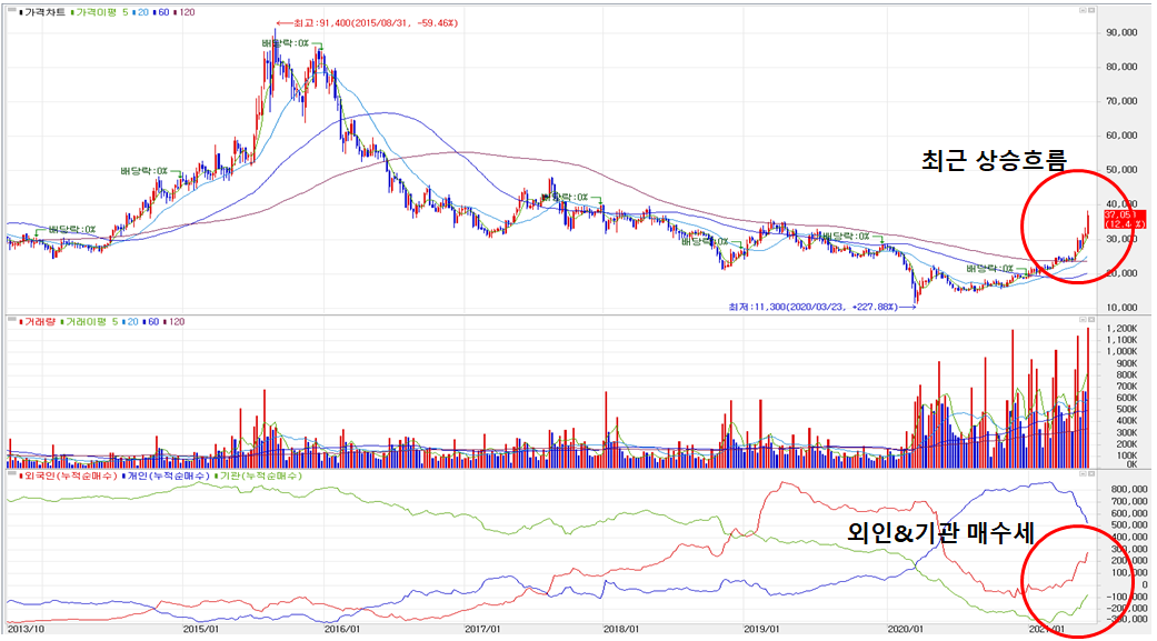 - 마냥 지르기에는 밸류에이션 부담이 있는 가격이다.