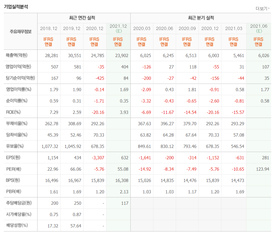 작년에는 코로나로 인해 식자재유통 및 푸드서비스가 모두 안좋았고 저마진 사업정리 및 수익성 개선으로 2021년 1분기는 영업이익에서 yoy 흑자전환했다.