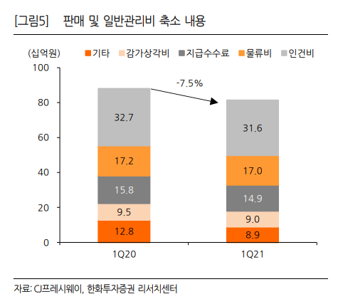 - 매출 확대를 위한 저수익 사업 다각화 : CJ프레시웨이는 사업부 구조조정 시행과 디마케팅 강화활동의 결과가 수익성 개선효과로 1분기 실적에 이미 나타났다.