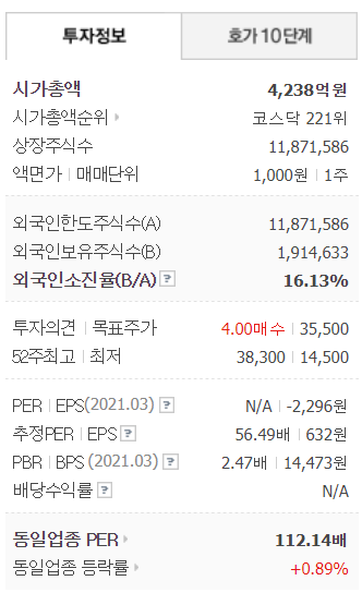 영업이익 컨센은 일자별로 04/30 351억 -> 05/31 396억 -> 06/21 404억이다.