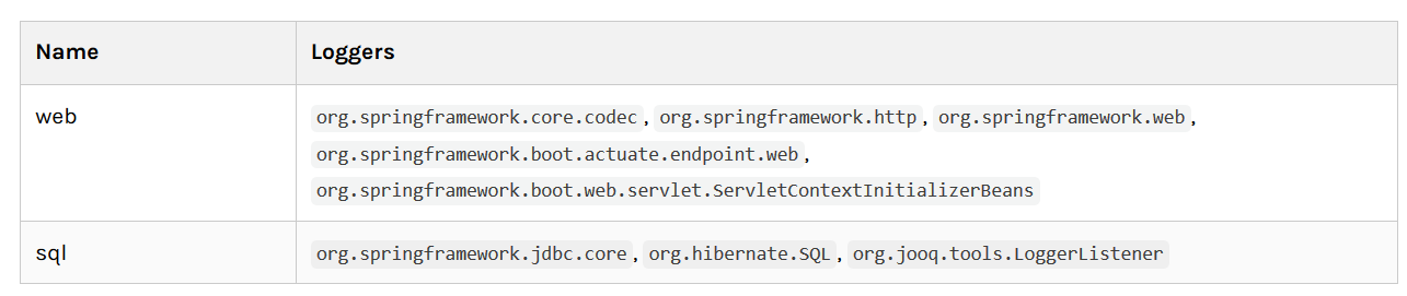 또한 스프링부트는 미리 설정된 그룹을 제공하기 때문에 편리하게 로그레벨 설정이 가능하다.
