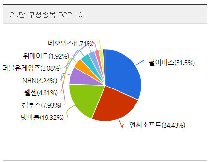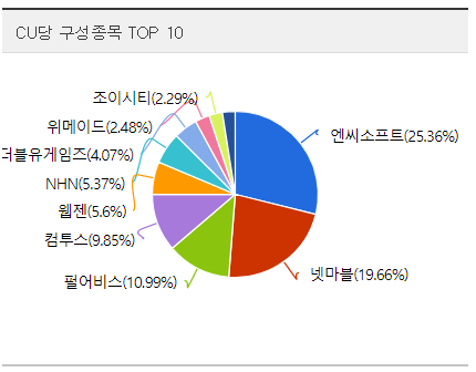 - 게임업계 3대장인 엔씨, 넷마블, 펄어비스의 비중이 높은 포트폴리오입니다.