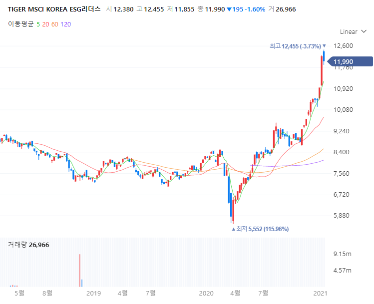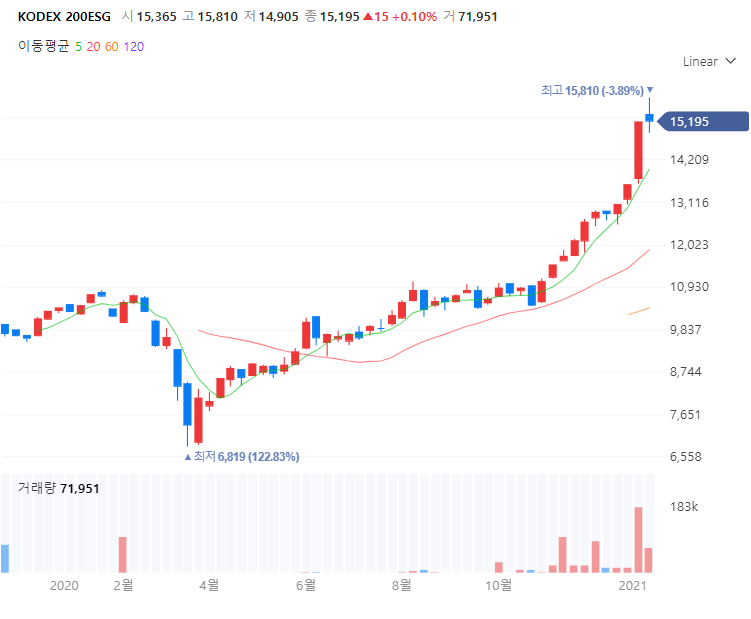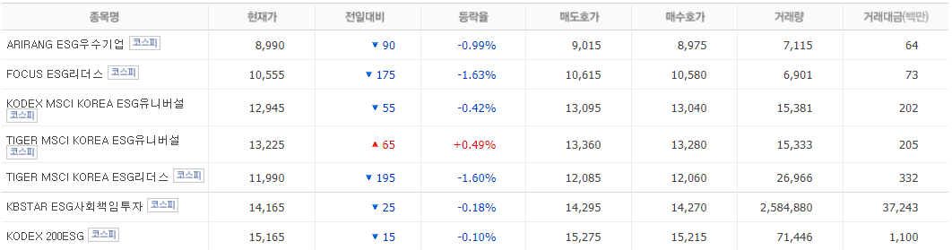 국내 ESG 관련 ETF는 총 7개의 상품이 있습니다. 이 상품 중 거래량에서 상위 3개인 목록을 뽑아 살펴보겠습니다.