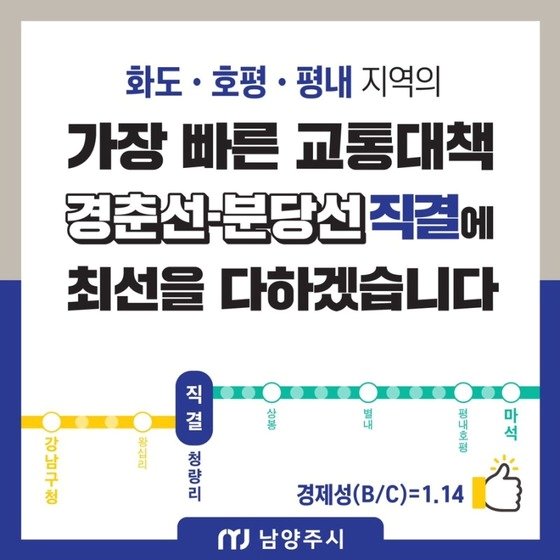 하루라도 빨리 경기도-남양주시-남양주시민끼리 의견 투합하여 진행에 나섰으면 좋겠지만 아직도 갈길이 멀어 보인다.