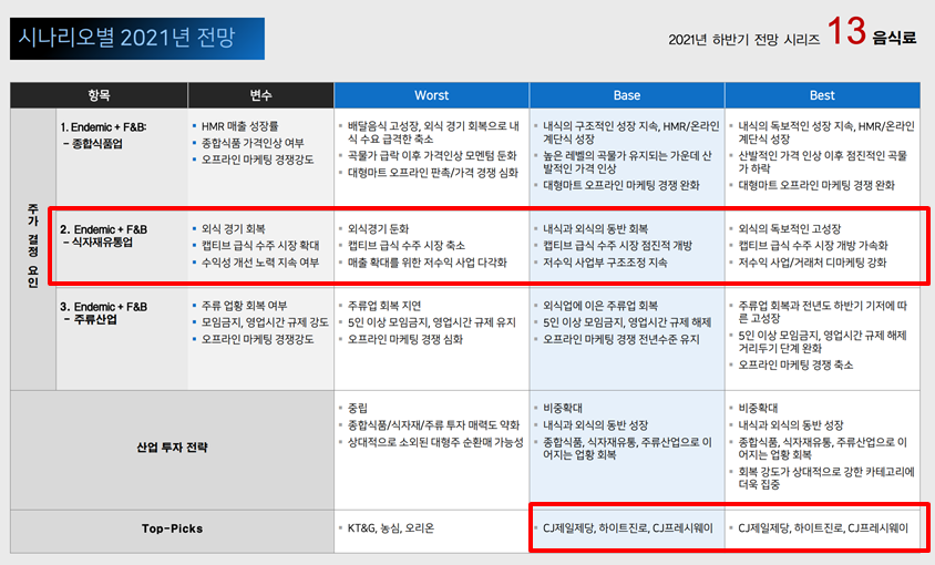 리포트에는 식자재유통을 제외하고 주류업과 휴게소/컨세션 업종의 내용이 있었지만 생략한다.