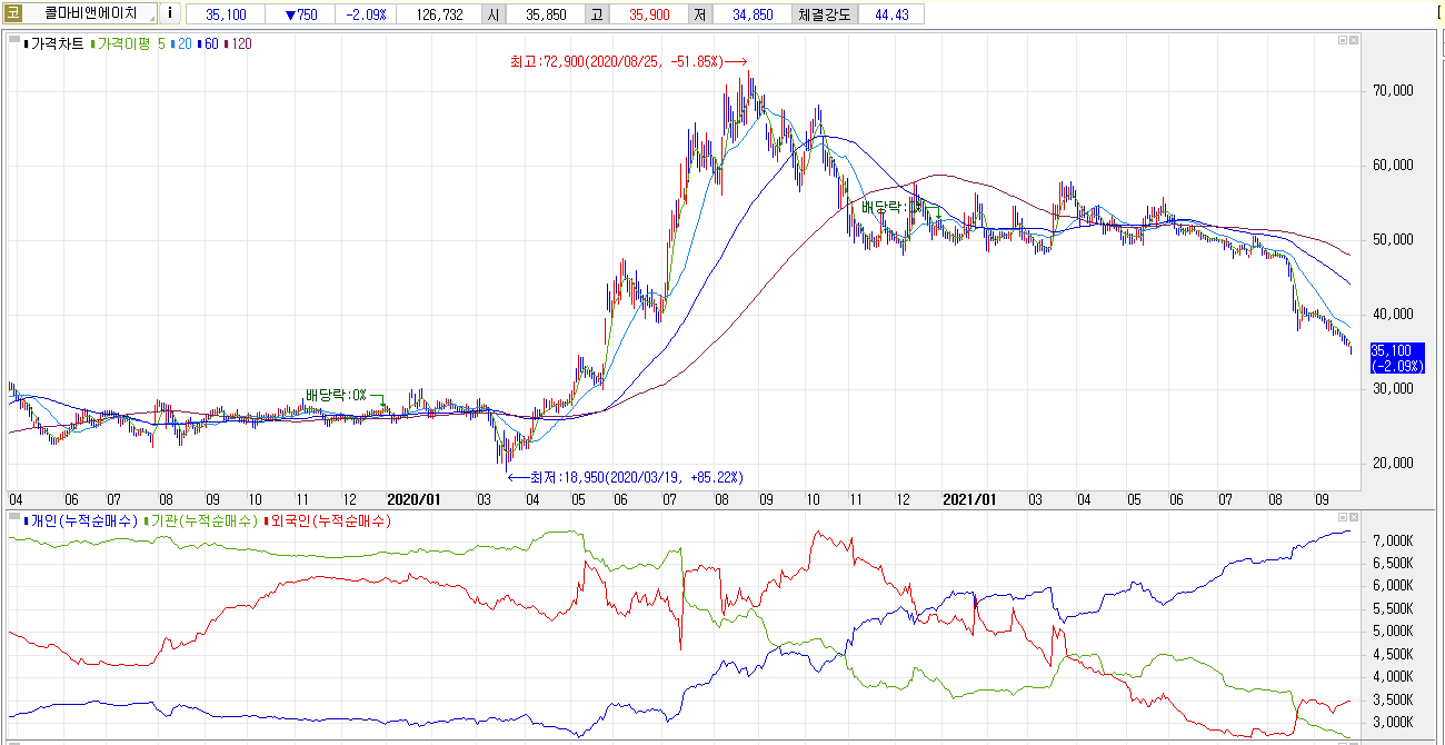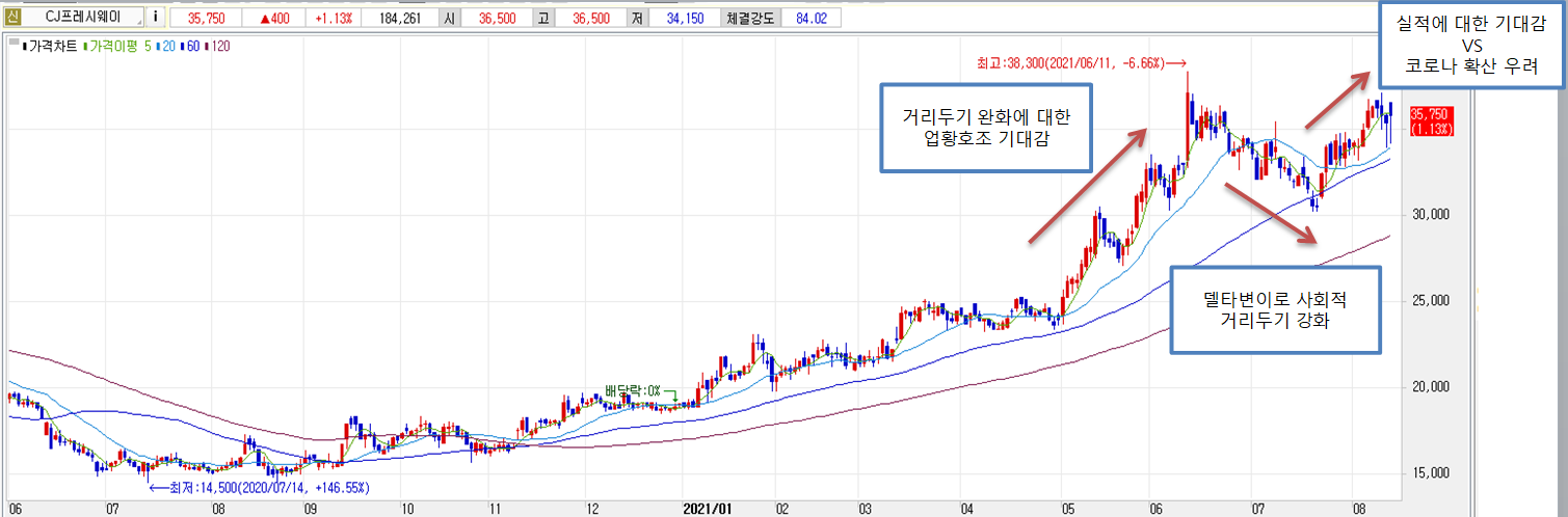 이때 걱정했던 게 개인이 들어올린 주가에 대한 걱정이었다. 급하게 올라온 만큼 시장조정이 왔을 때 차익실현으로 급하게 하락할 가능성에 대한 걱정이다.
