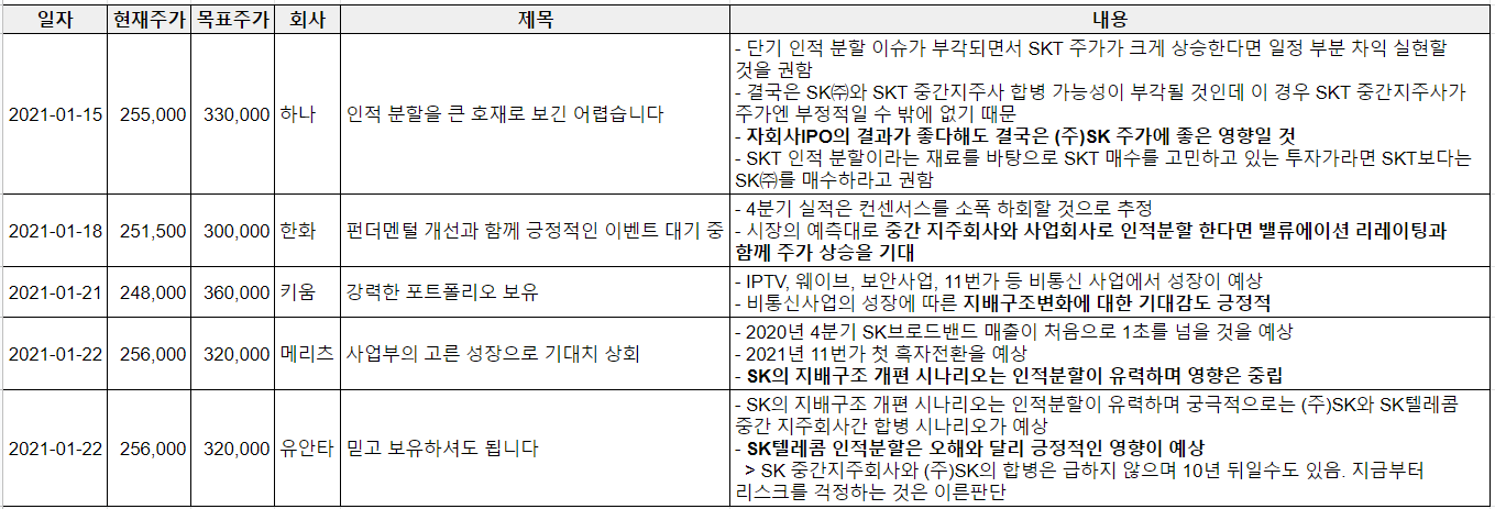 | SK텔레콤 주가 전망 - 2020 4Q 실적발표 및 인적분할 (0) | 2021.02.03 |